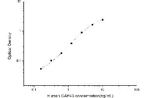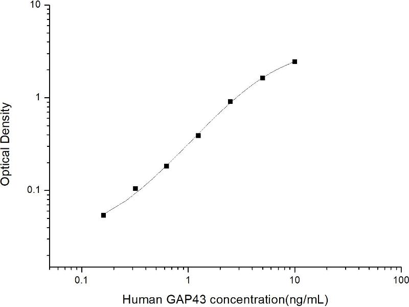 Intra-assay Precision (Precision within an assay): 3 samples with low, mid range and high level Human GAP43 were tested 20 times on one plate, respectively. Inter-assay Precision (Precision between assays): 3 samples with low, mid range and high level Human GAP43 were tested on 3 different plates, 20 replicates in each plate. Both intra-CV and inter-CV are < 10 %.