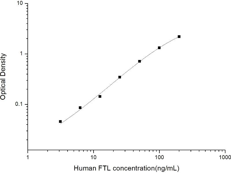 Intra-assay Precision (Precision within an assay): 3 samples with low, mid range and high level Human FTL were tested 20 times on one plate, respectively. Inter-assay Precision (Precision between assays): 3 samples with low, mid range and high level Human FTL were tested on 3 different plates, 20 replicates in each plate. Both intra-CV and inter-CV are < 10 %.