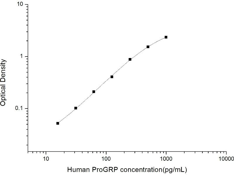 Intra-assay Precision (Precision within an assay): 3 samples with low, mid range and high level Human ProGRP were tested 20 times on one plate, respectively. Inter-assay Precision (Precision between assays): 3 samples with low, mid range and high level Human ProGRP were tested on 3 different plates, 20 replicates in each plate. Both intra-CV and inter-CV are < 10 %.