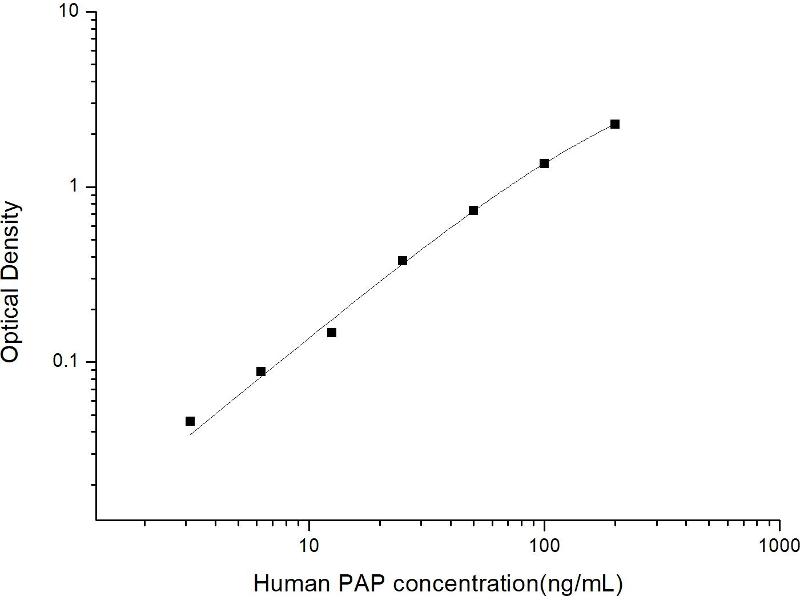 Intra-assay Precision (Precision within an assay): 3 samples with low, mid range and high level Human PAP were tested 20 times on one plate, respectively. Inter-assay Precision (Precision between assays): 3 samples with low, mid range and high level Human PAP were tested on 3 different plates, 20 replicates in each plate. Both intra-CV and inter-CV are < 10 %.