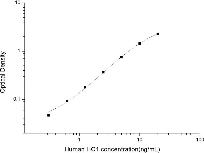 Intra-assay Precision (Precision within an assay): 3 samples with low, mid range and high level Human HO1 were tested 20 times on one plate, respectively. Inter-assay Precision (Precision between assays): 3 samples with low, mid range and high level Human HO1 were tested on 3 different plates, 20 replicates in each plate. Both intra-CV and inter-CV are < 10 %.