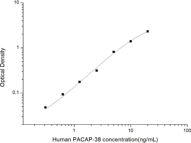 Intra-assay Precision (Precision within an assay): 3 samples with low, mid range and high level Human PACAP-38 were tested 20 times on one plate, respectively. Inter-assay Precision (Precision between assays): 3 samples with low, mid range and high level Human PACAP-38 were tested on 3 different plates, 20 replicates in each plate. Both intra-CV and inter-CV are < 10 %.