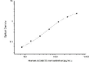 Intra-assay Precision (Precision within an assay): 3 samples with low, mid range and high level Human ADAM33 were tested 20 times on one plate, respectively. Inter-assay Precision (Precision between assays): 3 samples with low, mid range and high level Human ADAM33 were tested on 3 different plates, 20 replicates in each plate. Both intra-CV and inter-CV are < 10 %.