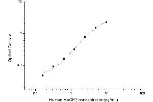 Intra-assay Precision (Precision within an assay): 3 samples with low, mid range and high level Human MeCP2 were tested 20 times on one plate, respectively. Inter-assay Precision (Precision between assays): 3 samples with low, mid range and high level Human MeCP2 were tested on 3 different plates, 20 replicates in each plate. Both intra-CV and inter-CV are < 10 %.
