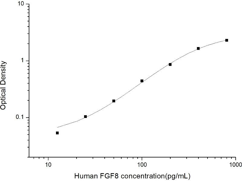 Intra-assay Precision (Precision within an assay): 3 samples with low, mid range and high level Human FGF8 were tested 20 times on one plate, respectively. Inter-assay Precision (Precision between assays): 3 samples with low, mid range and high level Human FGF8 were tested on 3 different plates, 20 replicates in each plate. Both intra-CV and inter-CV are < 10 %.