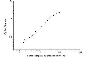 Intra-assay Precision (Precision within an assay): 3 samples with low, mid range and high level Human Hepc25 were tested 20 times on one plate, respectively. Inter-assay Precision (Precision between assays): 3 samples with low, mid range and high level Human Hepc25 were tested on 3 different plates, 20 replicates in each plate. Both intra-CV and inter-CV are < 10 %.