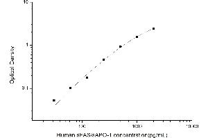 Intra-assay Precision (Precision within an assay): 3 samples with low, mid range and high level Human sFAS/sAPO-1 were tested 20 times on one plate, respectively. Inter-assay Precision (Precision between assays): 3 samples with low, mid range and high level Human sFAS/sAPO-1 were tested on 3 different plates, 20 replicates in each plate. Both intra-CV and inter-CV are < 10 %.