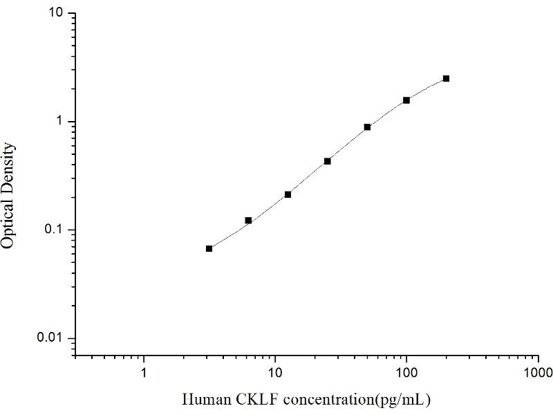 Intra-assay Precision (Precision within an assay): 3 samples with low, mid range and high level Human CKLF were tested 20 times on one plate, respectively. Inter-assay Precision (Precision between assays): 3 samples with low, mid range and high level Human CKLF were tested on 3 different plates, 20 replicates in each plate. Both intra-CV and inter-CV are < 10 %.