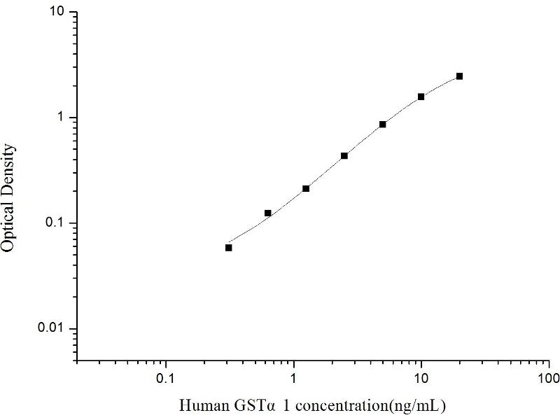 Intra-assay Precision (Precision within an assay): 3 samples with low, mid range and high level Human GSTα1 were tested 20 times on one plate, respectively. Inter-assay Precision (Precision between assays): 3 samples with low, mid range and high level Human GSTα1 were tested on 3 different plates, 20 replicates in each plate. Both intra-CV and inter-CV are < 10 %.