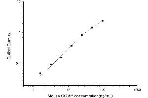 Intra-assay Precision (Precision within an assay): 3 samples with low, mid range and high level Mouse COMP were tested 20 times on one plate, respectively. Inter-assay Precision (Precision between assays): 3 samples with low, mid range and high level Mouse COMP were tested on 3 different plates, 20 replicates in each plate. Both intra-CV and inter-CV are < 10 %.