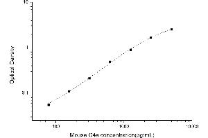 Intra-assay Precision (Precision within an assay): 3 samples with low, mid range and high level Mouse C4a were tested 20 times on one plate, respectively. Inter-assay Precision (Precision between assays): 3 samples with low, mid range and high level Mouse C4a were tested on 3 different plates, 20 replicates in each plate. Both intra-CV and inter-CV are < 10 %.