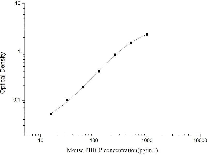 Intra-assay Precision (Precision within an assay): 3 samples with low, mid range and high level Mouse PIIICP were tested 20 times on one plate, respectively. Inter-assay Precision (Precision between assays): 3 samples with low, mid range and high level Mouse PIIICP were tested on 3 different plates, 20 replicates in each plate. Both intra-CV and inter-CV are < 10 %.