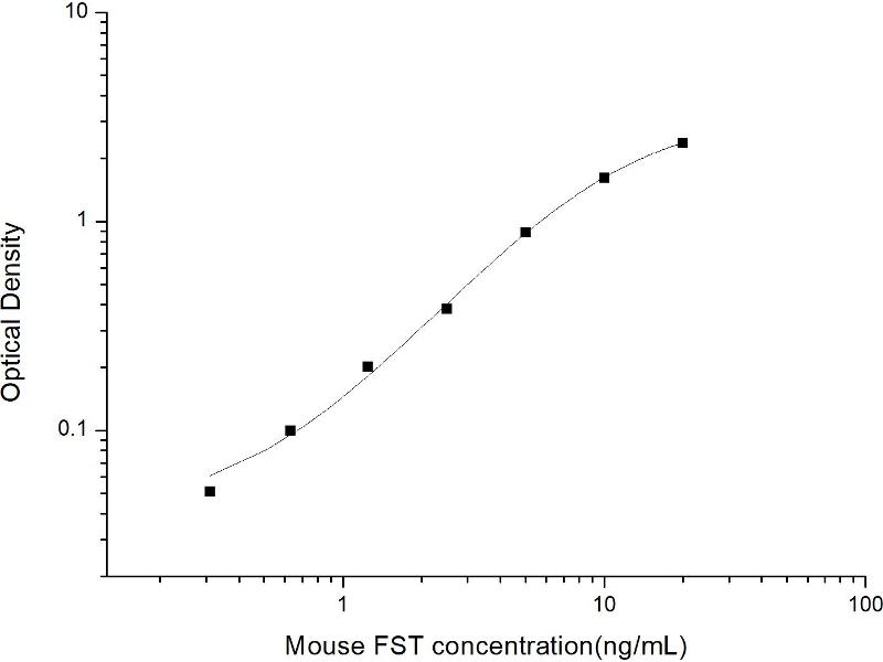Intra-assay Precision (Precision within an assay): 3 samples with low, mid range and high level Mouse FST were tested 20 times on one plate, respectively. Inter-assay Precision (Precision between assays): 3 samples with low, mid range and high level Mouse FST were tested on 3 different plates, 20 replicates in each plate. Both intra-CV and inter-CV are < 10 %.