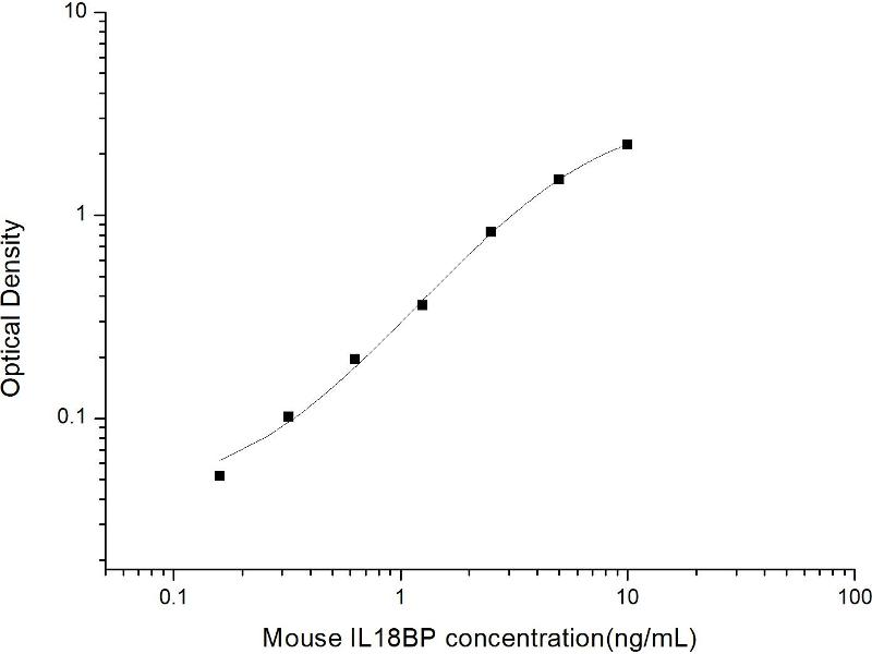 Intra-assay Precision (Precision within an assay): 3 samples with low, mid range and high level Mouse IL18BP were tested 20 times on one plate, respectively. Inter-assay Precision (Precision between assays): 3 samples with low, mid range and high level Mouse IL18BP were tested on 3 different plates, 20 replicates in each plate. Both intra-CV and inter-CV are < 10 %.