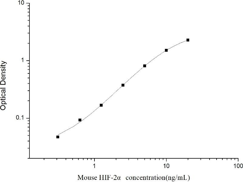 Intra-assay Precision (Precision within an assay): 3 samples with low, mid range and high level Mouse HIF-2α were tested 20 times on one plate, respectively. Inter-assay Precision (Precision between assays): 3 samples with low, mid range and high level Mouse HIF-2α were tested on 3 different plates, 20 replicates in each plate. Both intra-CV and inter-CV are < 10 %.