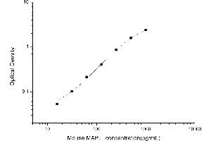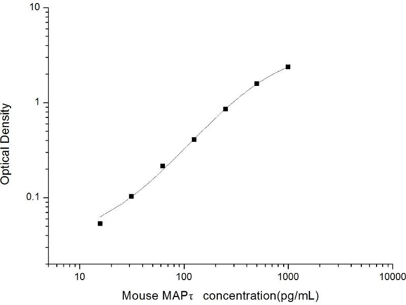 Intra-assay Precision (Precision within an assay): 3 samples with low, mid range and high level Mouse MAPτ were tested 20 times on one plate, respectively. Inter-assay Precision (Precision between assays): 3 samples with low, mid range and high level Mouse MAPτ were tested on 3 different plates, 20 replicates in each plate. Both intra-CV and inter-CV are < 10 %.