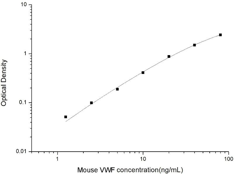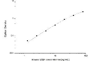 Intra-assay Precision (Precision within an assay): 3 samples with low, mid range and high level Mouse VWF were tested 20 times on one plate, respectively. Inter-assay Precision (Precision between assays): 3 samples with low, mid range and high level Mouse VWF were tested on 3 different plates, 20 replicates in each plate. Both intra-CV and inter-CV are < 10 %.