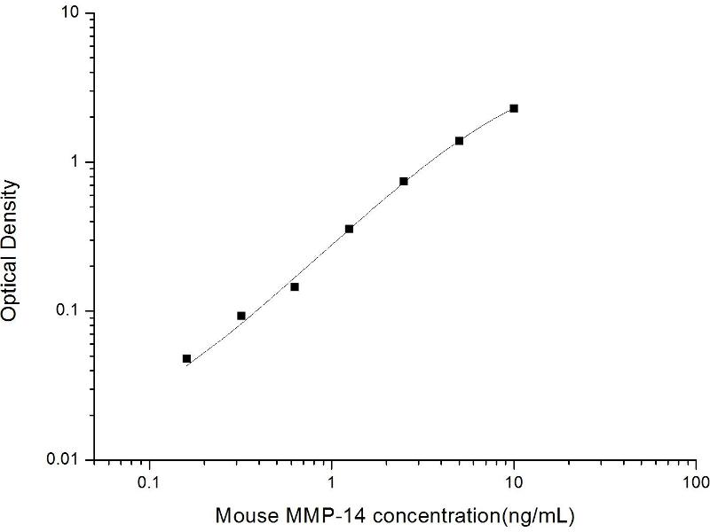 Intra-assay Precision (Precision within an assay): 3 samples with low, mid range and high level Mouse MMP-14 were tested 20 times on one plate, respectively. Inter-assay Precision (Precision between assays): 3 samples with low, mid range and high level Mouse MMP-14 were tested on 3 different plates, 20 replicates in each plate. Both intra-CV and inter-CV are < 10 %.