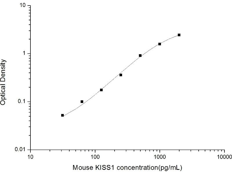 Intra-assay Precision (Precision within an assay): 3 samples with low, mid range and high level Mouse KISS1 were tested 20 times on one plate, respectively. Inter-assay Precision (Precision between assays): 3 samples with low, mid range and high level Mouse KISS1 were tested on 3 different plates, 20 replicates in each plate. Both intra-CV and inter-CV are < 10 %.
