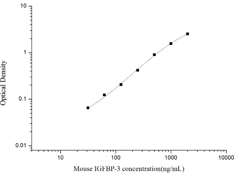 Intra-assay Precision (Precision within an assay): 3 samples with low, mid range and high level Mouse IGFBP-3 were tested 20 times on one plate, respectively. Inter-assay Precision (Precision between assays): 3 samples with low, mid range and high level Mouse IGFBP-3 were tested on 3 different plates, 20 replicates in each plate. Both intra-CV and inter-CV are < 10 %.