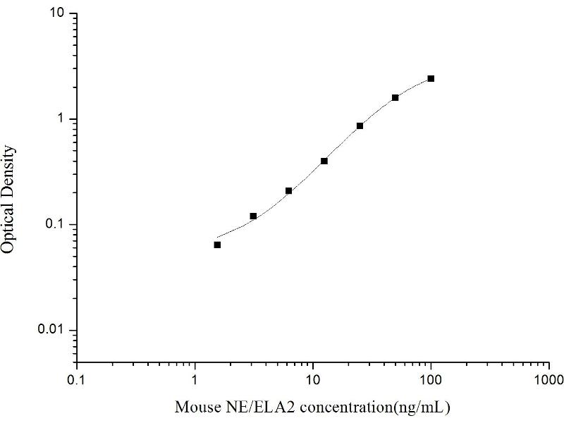 Intra-assay Precision (Precision within an assay): 3 samples with low, mid range and high level Mouse NE/ELA2 were tested 20 times on one plate, respectively. Inter-assay Precision (Precision between assays): 3 samples with low, mid range and high level Mouse NE/ELA2 were tested on 3 different plates, 20 replicates in each plate. Both intra-CV and inter-CV are < 10 %.