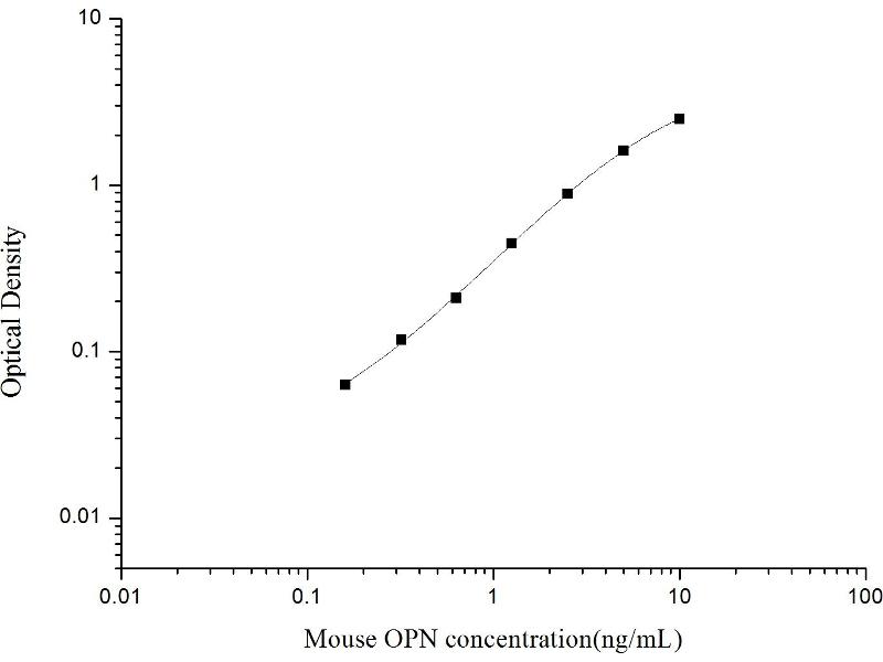 Intra-assay Precision (Precision within an assay): 3 samples with low, mid range and high level Mouse OPN were tested 20 times on one plate, respectively. Inter-assay Precision (Precision between assays): 3 samples with low, mid range and high level Mouse OPN were tested on 3 different plates, 20 replicates in each plate. Both intra-CV and inter-CV are < 10 %.
