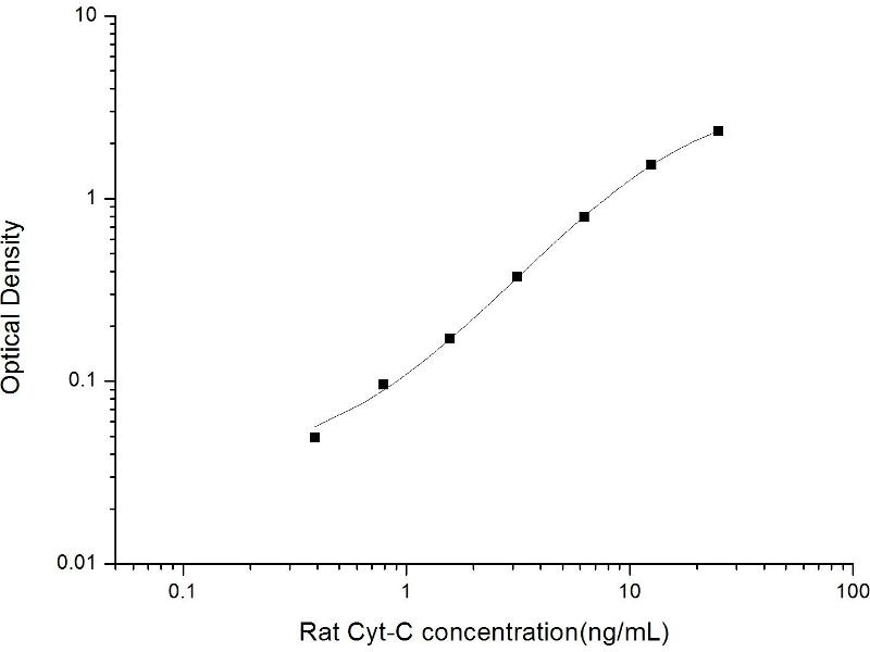 Intra-assay Precision (Precision within an assay): 3 samples with low, mid range and high level Rat Cyt-C were tested 20 times on one plate, respectively. Inter-assay Precision (Precision between assays): 3 samples with low, mid range and high level Rat Cyt-C were tested on 3 different plates, 20 replicates in each plate. Both intra-CV and inter-CV are < 10 %.