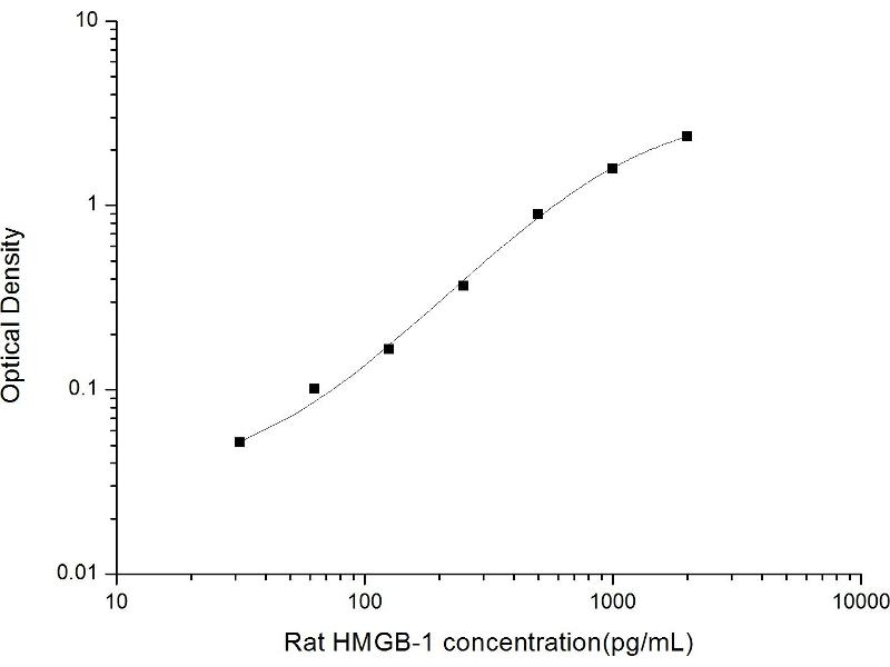 Intra-assay Precision (Precision within an assay): 3 samples with low, mid range and high level Rat HMGB-1 were tested 20 times on one plate, respectively. Inter-assay Precision (Precision between assays): 3 samples with low, mid range and high level Rat HMGB-1 were tested on 3 different plates, 20 replicates in each plate. Both intra-CV and inter-CV are < 10 %.