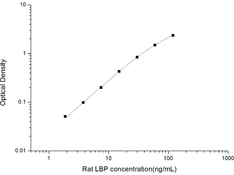 Intra-assay Precision (Precision within an assay): 3 samples with low, mid range and high level Rat LBP were tested 20 times on one plate, respectively. Inter-assay Precision (Precision between assays): 3 samples with low, mid range and high level Rat LBP were tested on 3 different plates, 20 replicates in each plate. Both intra-CV and inter-CV are < 10 %.