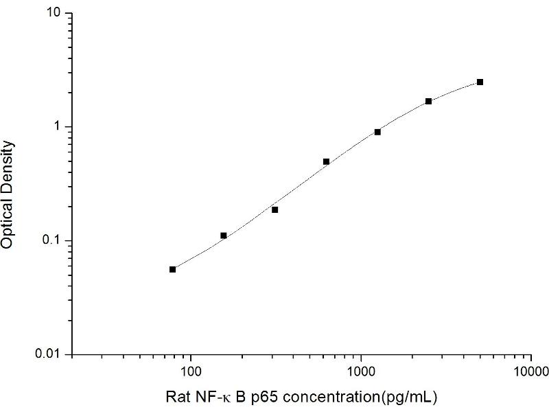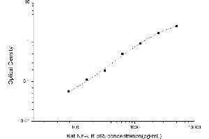 Intra-assay Precision (Precision within an assay): 3 samples with low, mid range and high level Rat NFKB-p65 were tested 20 times on one plate, respectively. Inter-assay Precision (Precision between assays): 3 samples with low, mid range and high level Rat NFKB-p65 were tested on 3 different plates, 20 replicates in each plate. Both intra-CV and inter-CV are < 10 %.