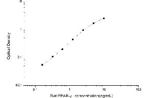 Intra-assay Precision (Precision within an assay): 3 samples with low, mid range and high level Rat PPAR-γ were tested 20 times on one plate, respectively. Inter-assay Precision (Precision between assays): 3 samples with low, mid range and high level Rat PPAR-γ were tested on 3 different plates, 20 replicates in each plate. Both intra-CV and inter-CV are < 10 %.