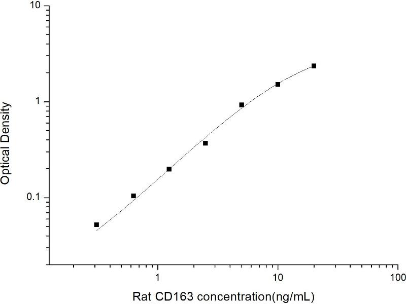 Intra-assay Precision (Precision within an assay): 3 samples with low, mid range and high level Rat CD163 were tested 20 times on one plate, respectively. Inter-assay Precision (Precision between assays): 3 samples with low, mid range and high level Rat CD163 were tested on 3 different plates, 20 replicates in each plate. Both intra-CV and inter-CV are < 10 %.