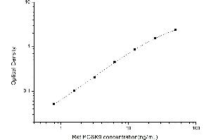 Intra-assay Precision (Precision within an assay): 3 samples with low, mid range and high level Rat PCSK9 were tested 20 times on one plate, respectively. Inter-assay Precision (Precision between assays): 3 samples with low, mid range and high level Rat PCSK9 were tested on 3 different plates, 20 replicates in each plate. Both intra-CV and inter-CV are < 10 %.