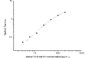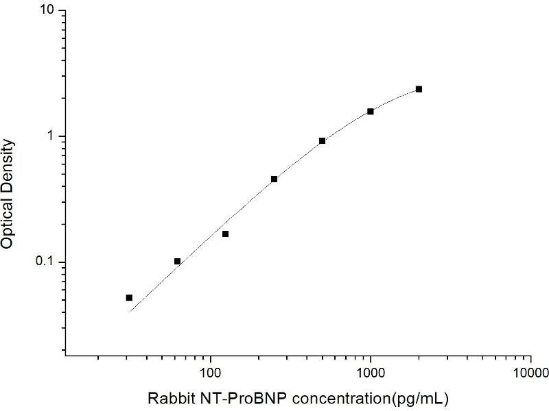 Intra-assay Precision (Precision within an assay): 3 samples with low, mid range and high level Rabbit NT-proBNP were tested 20 times on one plate, respectively. Inter-assay Precision (Precision between assays): 3 samples with low, mid range and high level Rabbit NT-proBNP were tested on 3 different plates, 20 replicates in each plate. Both intra-CV and inter-CV are < 10 %.