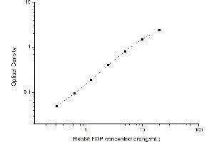 Intra-assay Precision (Precision within an assay): 3 samples with low, mid range and high level Rabbit FDP were tested 20 times on one plate, respectively. Inter-assay Precision (Precision between assays): 3 samples with low, mid range and high level Rabbit FDP were tested on 3 different plates, 20 replicates in each plate. Both intra-CV and inter-CV are < 10 %.