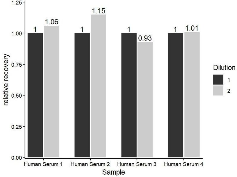 If a lysis buffer is used to prepare tissue homogenates or cell culture supernatant, there is a possibility of causing a deviation due to the introduced chemical substance. The recommended dilution factor is for reference only.