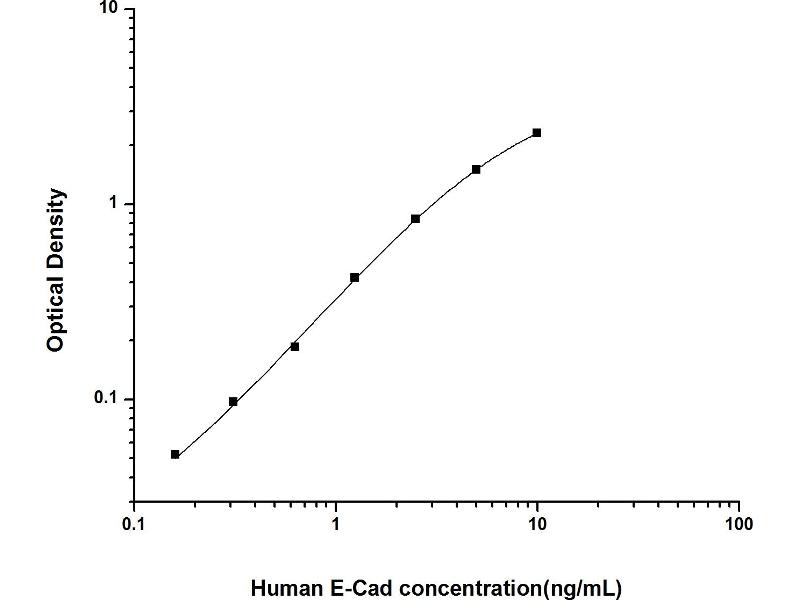 Intra-assay Precision (Precision within an assay): 3 samples with low, mid range and high level Human E-Cad were tested 20 times on one plate, respectively. Inter-assay Precision (Precision between assays): 3 samples with low, mid range and high level Human E-Cad were tested on 3 different plates, 20 replicates in each plate. Both intra-CV and inter-CV are < 10 %.