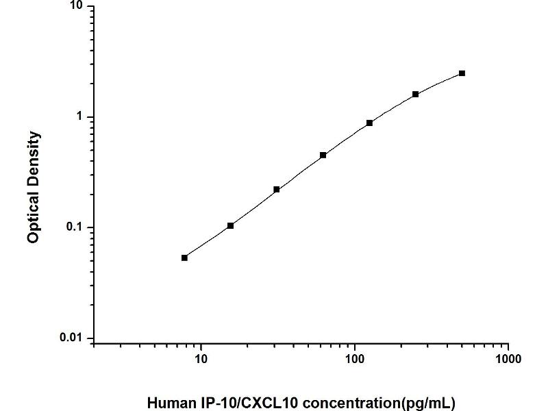 Intra-assay Precision (Precision within an assay): 3 samples with low, mid range and high level Human IP-10/CXCL10 were tested 20 times on one plate, respectively. Inter-assay Precision (Precision between assays): 3 samples with low, mid range and high level Human IP-10/CXCL10 were tested on 3 different plates, 20 replicates in each plate. Both intra-CV and inter-CV are < 10 %.