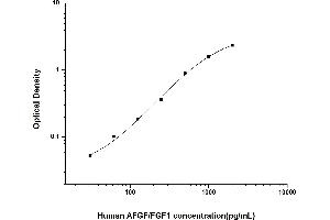 Intra-assay Precision (Precision within an assay): 3 samples with low, mid range and high level Human AFGF/FGF1 were tested 20 times on one plate, respectively. Inter-assay Precision (Precision between assays): 3 samples with low, mid range and high level Human AFGF/FGF1 were tested on 3 different plates, 20 replicates in each plate. Both intra-CV and inter-CV are < 10 %.