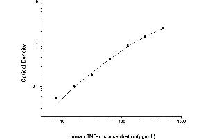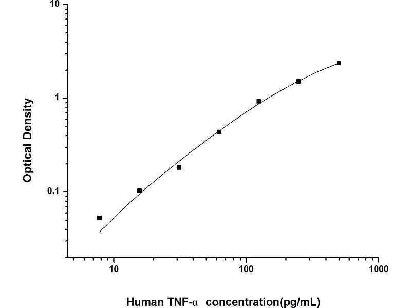 Intra-assay Precision (Precision within an assay): 3 samples with low, mid range and high level Human TNF-α were tested 20 times on one plate, respectively. Inter-assay Precision (Precision between assays): 3 samples with low, mid range and high level Human TNF-α were tested on 3 different plates, 20 replicates in each plate. Both intra-CV and inter-CV are < 10 %.