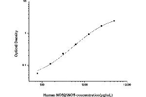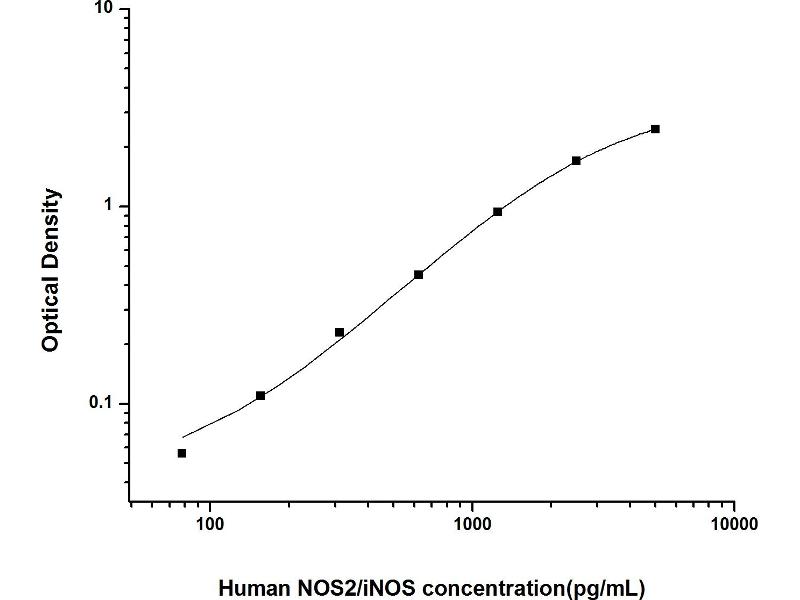 Intra-assay Precision (Precision within an assay): 3 samples with low, mid range and high level Human NOS2/iNOS were tested 20 times on one plate, respectively. Inter-assay Precision (Precision between assays): 3 samples with low, mid range and high level Human NOS2/iNOS were tested on 3 different plates, 20 replicates in each plate. Both intra-CV and inter-CV are < 10 %.