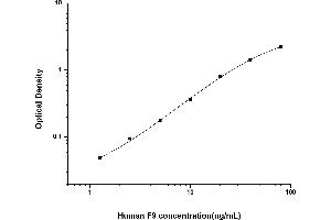 Intra-assay Precision (Precision within an assay): 3 samples with low, mid range and high level Human F9 were tested 20 times on one plate, respectively. Inter-assay Precision (Precision between assays): 3 samples with low, mid range and high level Human F9 were tested on 3 different plates, 20 replicates in each plate. Both intra-CV and inter-CV are < 10 %.