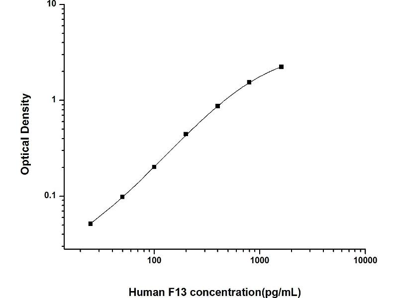 Intra-assay Precision (Precision within an assay): 3 samples with low, mid range and high level Human F13 were tested 20 times on one plate, respectively. Inter-assay Precision (Precision between assays): 3 samples with low, mid range and high level Human F13 were tested on 3 different plates, 20 replicates in each plate. Both intra-CV and inter-CV are < 10 %.