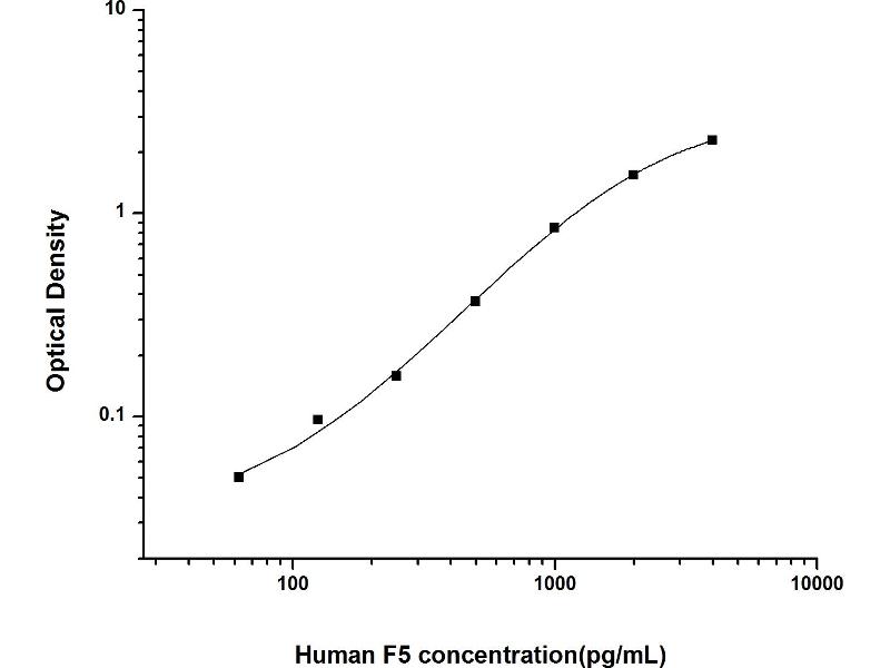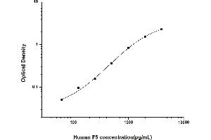 Intra-assay Precision (Precision within an assay): 3 samples with low, mid range and high level Human F5 were tested 20 times on one plate, respectively. Inter-assay Precision (Precision between assays): 3 samples with low, mid range and high level Human F5 were tested on 3 different plates, 20 replicates in each plate. Both intra-CV and inter-CV are < 10 %.