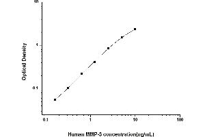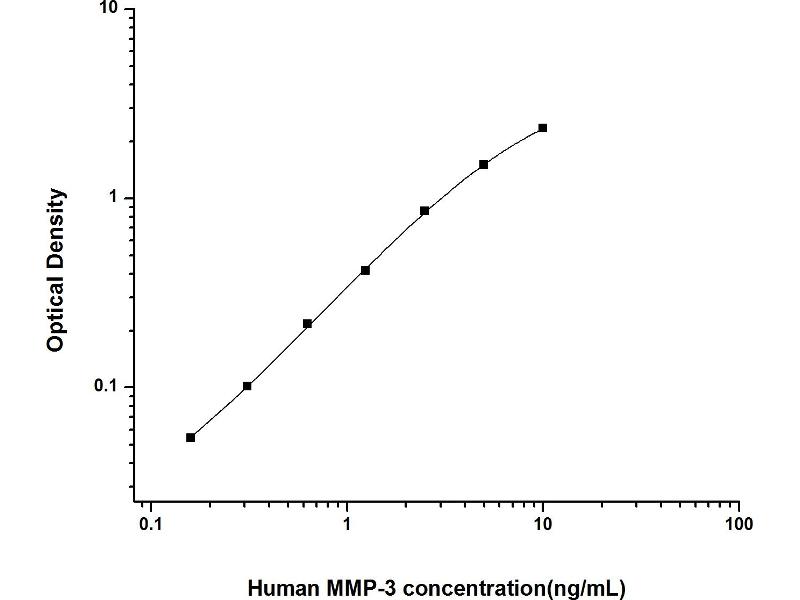 Intra-assay Precision (Precision within an assay): 3 samples with low, mid range and high level Human MMP-3 were tested 20 times on one plate, respectively. Inter-assay Precision (Precision between assays): 3 samples with low, mid range and high level Human MMP-3 were tested on 3 different plates, 20 replicates in each plate. Both intra-CV and inter-CV are < 10 %.