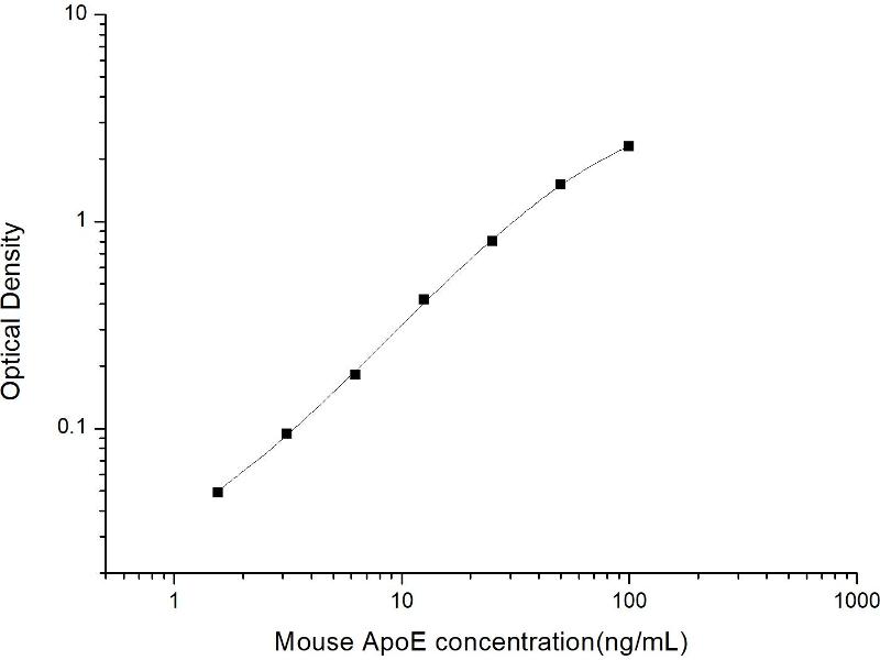 Intra-assay Precision (Precision within an assay): 3 samples with low, mid range and high level Mouse ApoE were tested 20 times on one plate, respectively. Inter-assay Precision (Precision between assays): 3 samples with low, mid range and high level Mouse ApoE were tested on 3 different plates, 20 replicates in each plate. Both intra-CV and inter-CV are < 10 %.