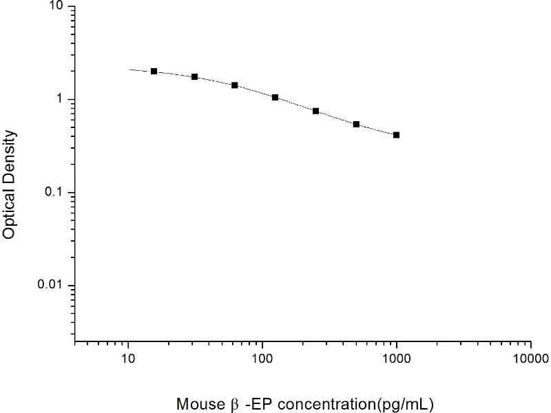Intra-assay Precision (Precision within an assay): 3 samples with low, mid range and high level Mouse β-EP were tested 20 times on one plate, respectively. Inter-assay Precision (Precision between assays): 3 samples with low, mid range and high level Mouse β-EP were tested on 3 different plates, 20 replicates in each plate. Both intra-CV and inter-CV are < 10 %.