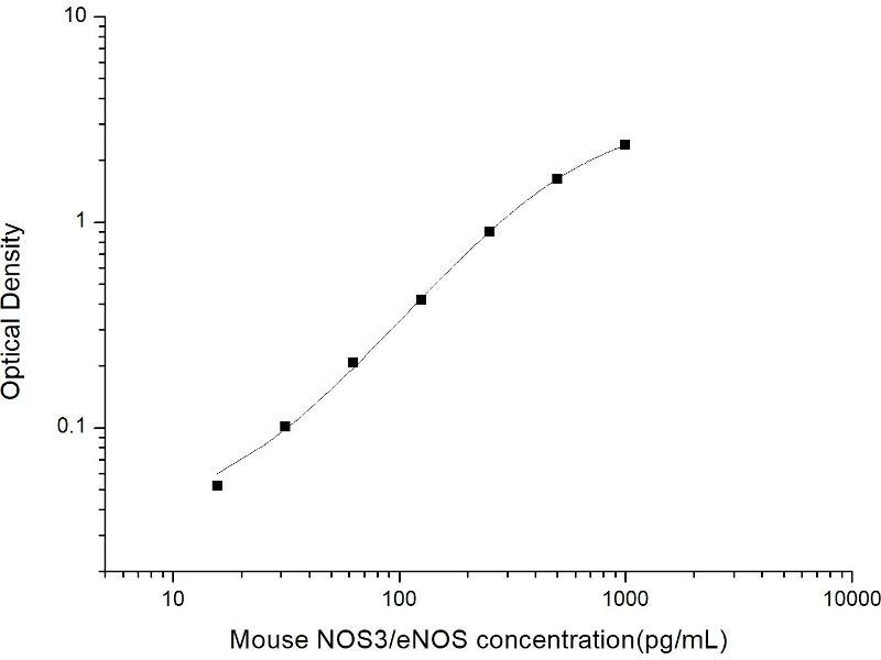 Intra-assay Precision (Precision within an assay): 3 samples with low, mid range and high level Mouse NOS3/eNOS were tested 20 times on one plate, respectively. Inter-assay Precision (Precision between assays): 3 samples with low, mid range and high level Mouse NOS3/eNOS were tested on 3 different plates, 20 replicates in each plate. Both intra-CV and inter-CV are < 10 %.