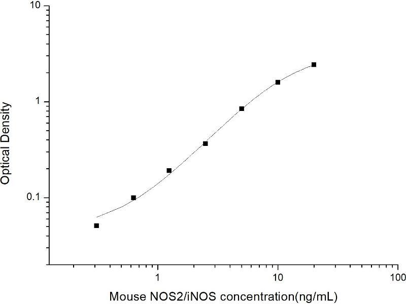 Intra-assay Precision (Precision within an assay): 3 samples with low, mid range and high level Mouse NOS2/iNOS were tested 20 times on one plate, respectively. Inter-assay Precision (Precision between assays): 3 samples with low, mid range and high level Mouse NOS2/iNOS were tested on 3 different plates, 20 replicates in each plate. Both intra-CV and inter-CV are < 10 %.
