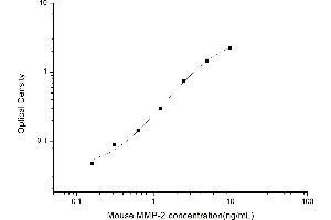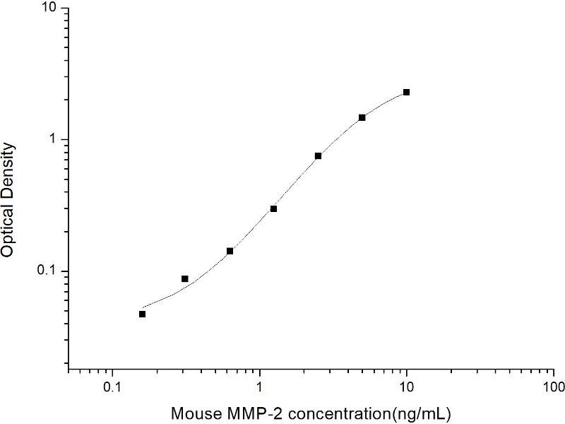 Intra-assay Precision (Precision within an assay): 3 samples with low, mid range and high level Mouse MMP-2 were tested 20 times on one plate, respectively. Inter-assay Precision (Precision between assays): 3 samples with low, mid range and high level Mouse MMP-2 were tested on 3 different plates, 20 replicates in each plate. Both intra-CV and inter-CV are < 10 %.